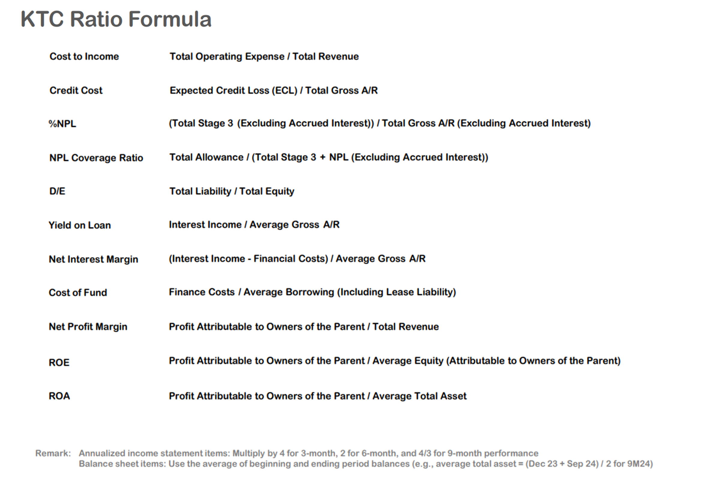 In addition to managing its capital structure, the Group continued to uphold strong financial discipline, as reflected by a low debt-to-equity (D/E) ratio of 1.51 times, a significant decline from 1.64 times in 2Q2025 and 1.78 times in 3Q2024. The improvement was mainly attributed to two key factors: 1) consistent profit accumulation, which strengthened shareholders’ equity; and 2) the economic slowdown resulted in slower portfolio expansion, lowering the need for additional borrowings to support new loans. However, the current D/E ratio remains well below the debt covenant of 10 times, underscoring KTC’s high financial flexibility to support future business expansion and withstand potential economic volatility.
